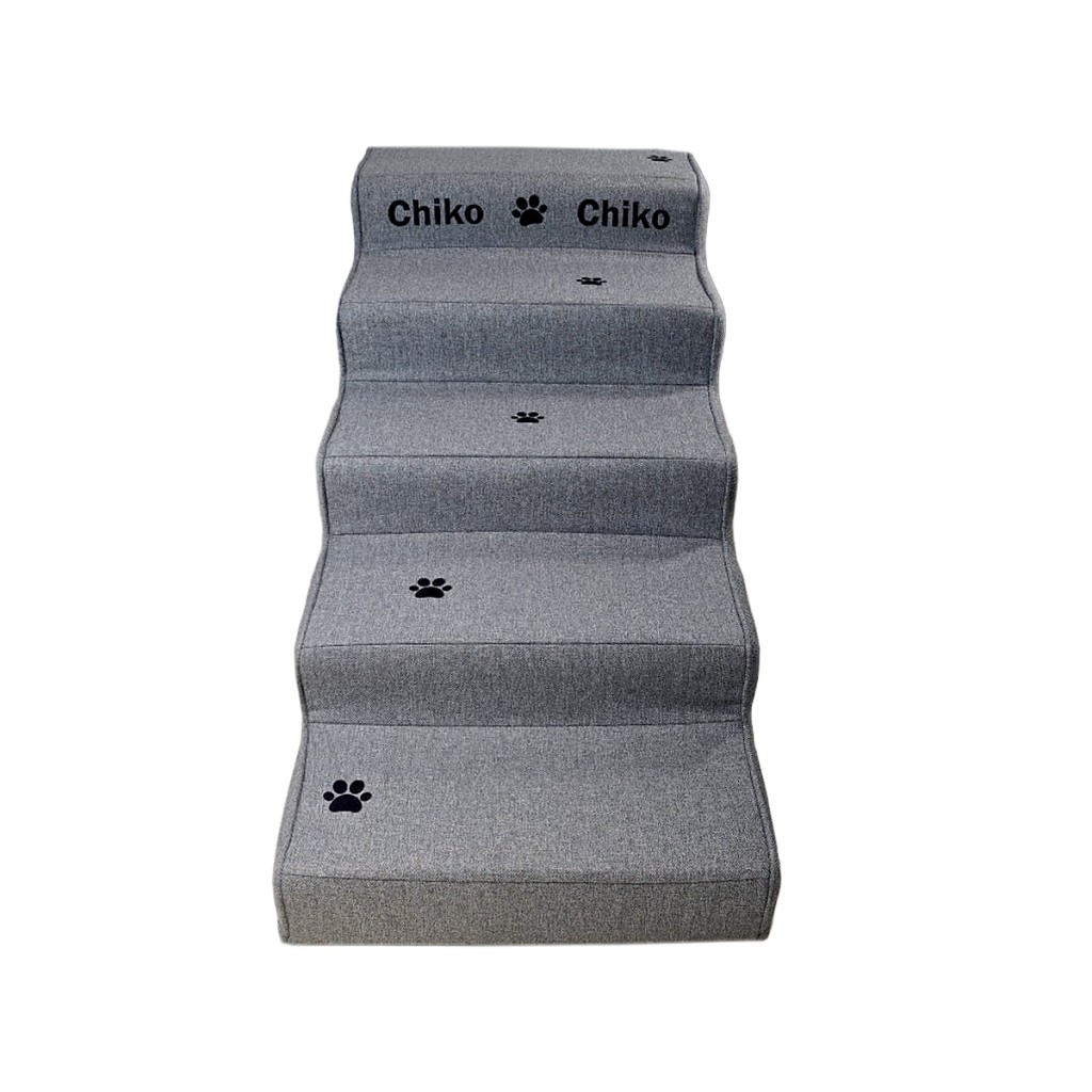 پله VIP سگ سفارشی | مدل ۵ پله طوسی با چاپ اسم پت و طراحی مقاوم کد 1263
