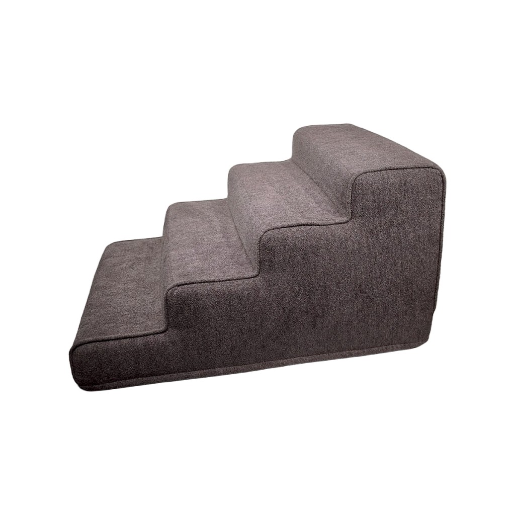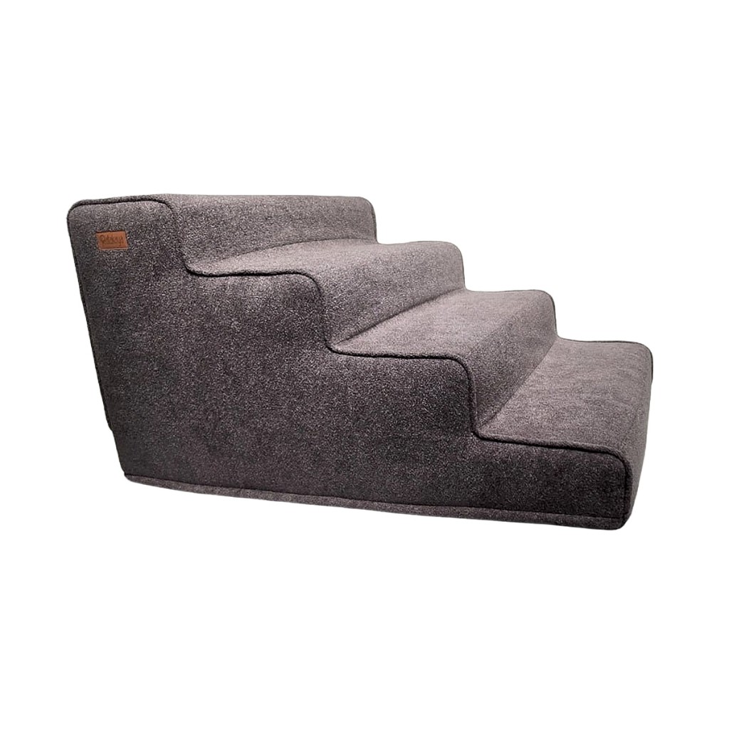 پله VIP پلاس سگ با طراحی سفارشی ۴ پلهای، رنگ مدادی، پارچه مبلی ترک، مناسب وزن بالای ۷ کیلوگرم. ساختهشده از متریال مقاوم و لوکس، مناسب نژادهای کوچک و متوسط برای دسترسی راحت به مبل، تخت یا ماشین.