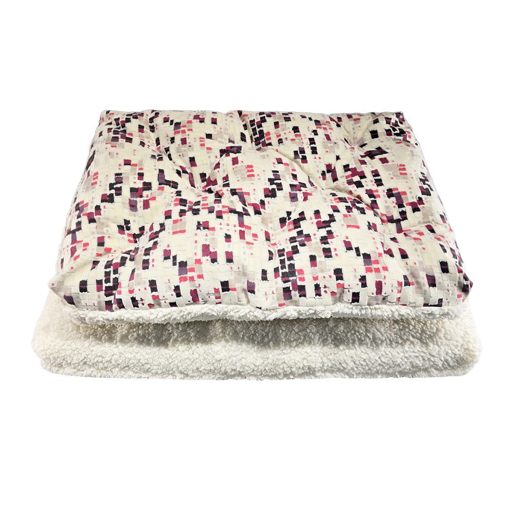 تشک دورو سگ با طرح پیکسلی، ترکیب پارچه مبلی و تدی کرم شیری، مناسب برای خواب راحت پتهای خانگی. طراحی خاص، قابل شستوشو، در دو سایز برای نژادهای مختلف.