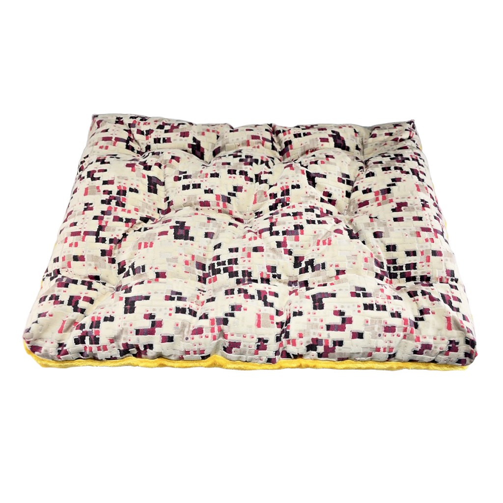 تشک دورو سگ با طرح پیکسلی، ترکیب پارچه مبلی و تدی زرد، مناسب برای خواب راحت پتهای خانگی. طراحی خاص، قابل شستوشو، در سایز ۷۵×۵۵ سانتیمتر.